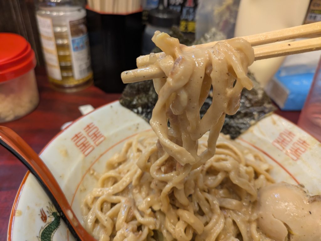 しばしば並ぶこともある上、極太面を茹でるため時間がかかります。ざっくり30分はかかるものと考えておいたほうがいいです。