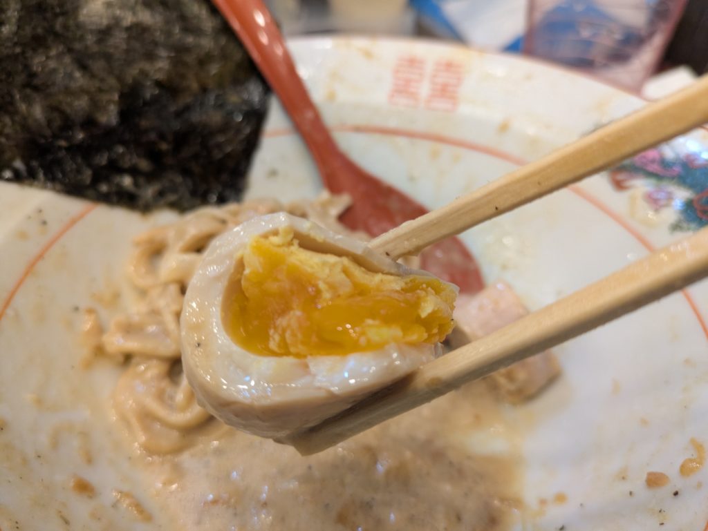 ・最初のうちはうまいと感じる味玉、チャーシューを〆の楽しみに残す。