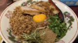 低温調理のジューシーなチャーシュー、カエシの効いた味玉、魔改造された殺人的なコクの背脂、なんだかんだ半分以上残っていたライス、ダメ押しの生卵が融合した背脂チャーシュー卵丼をいただきます。