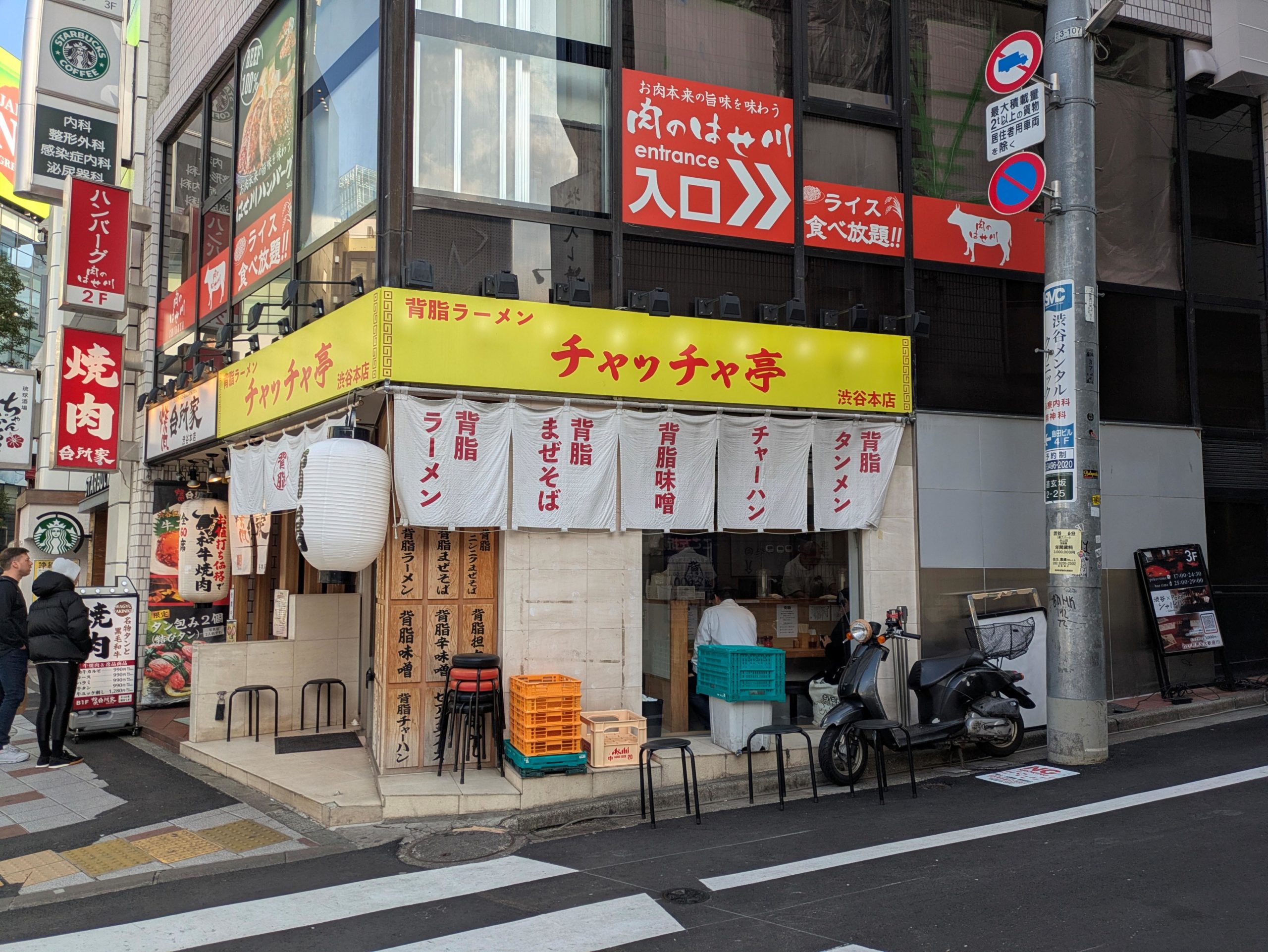 そんなわけで今日は渋谷の道玄坂にあるチャッチャ亭で背脂まぜそばをやけ食いしていきます。