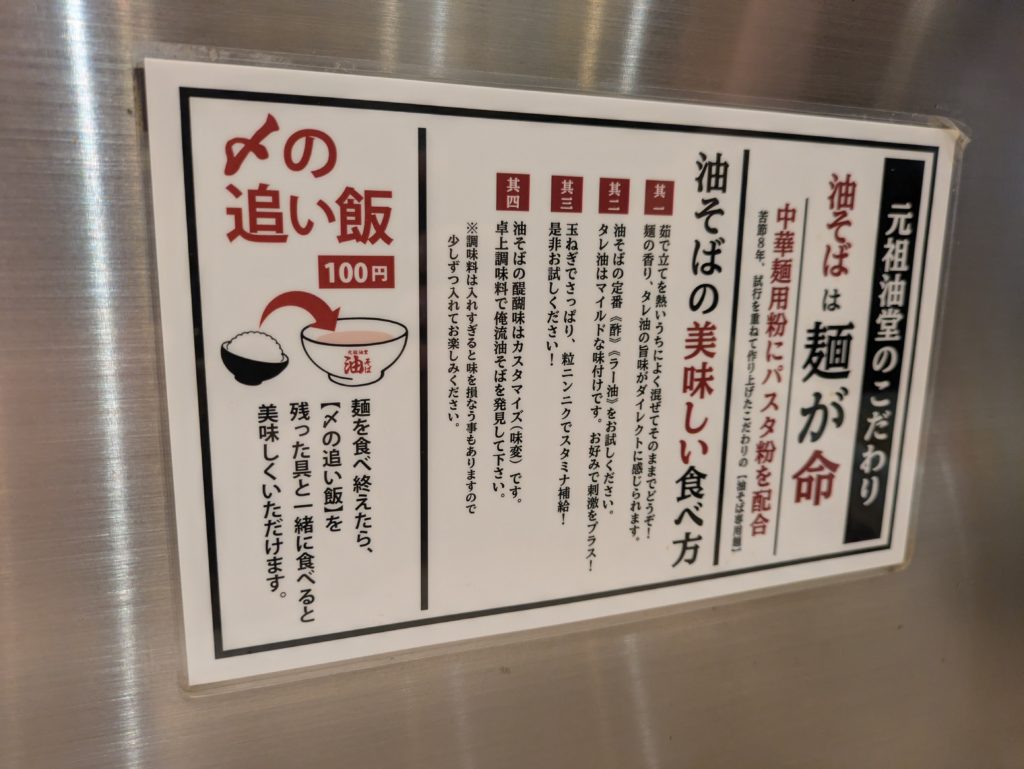 店名:元祖油堂 油そば川崎駅前店