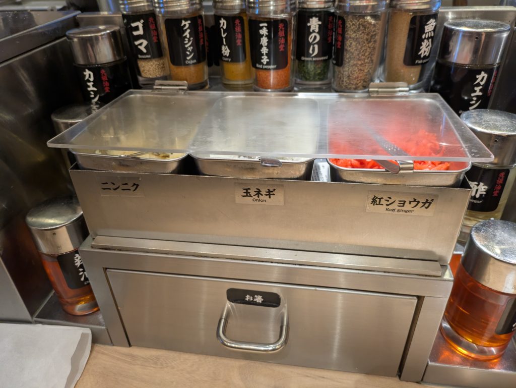 この店の一番の売りは多彩なトッピングによる味変です。